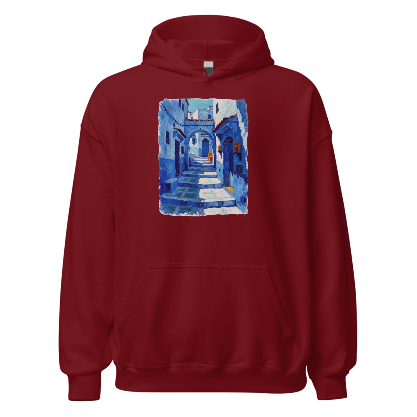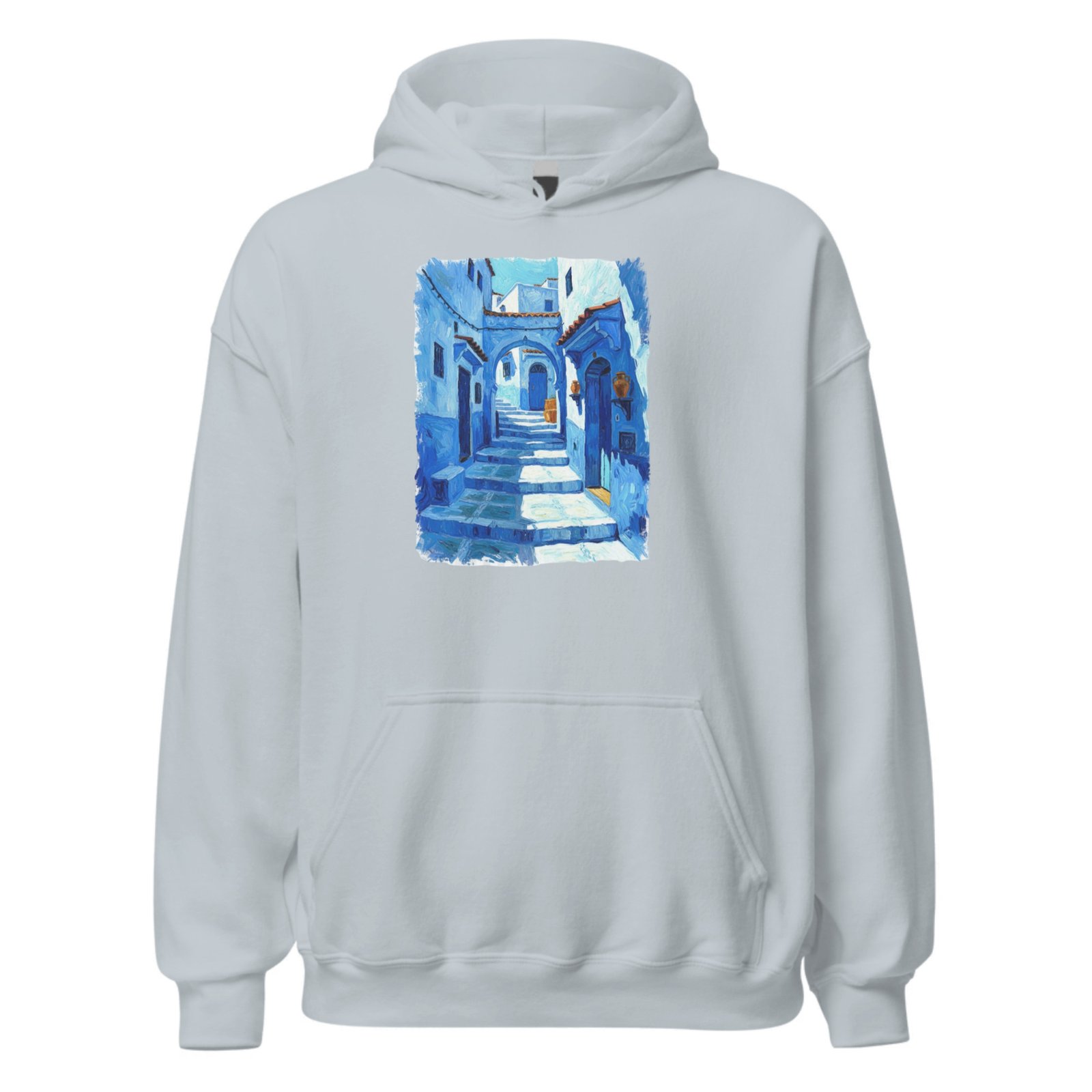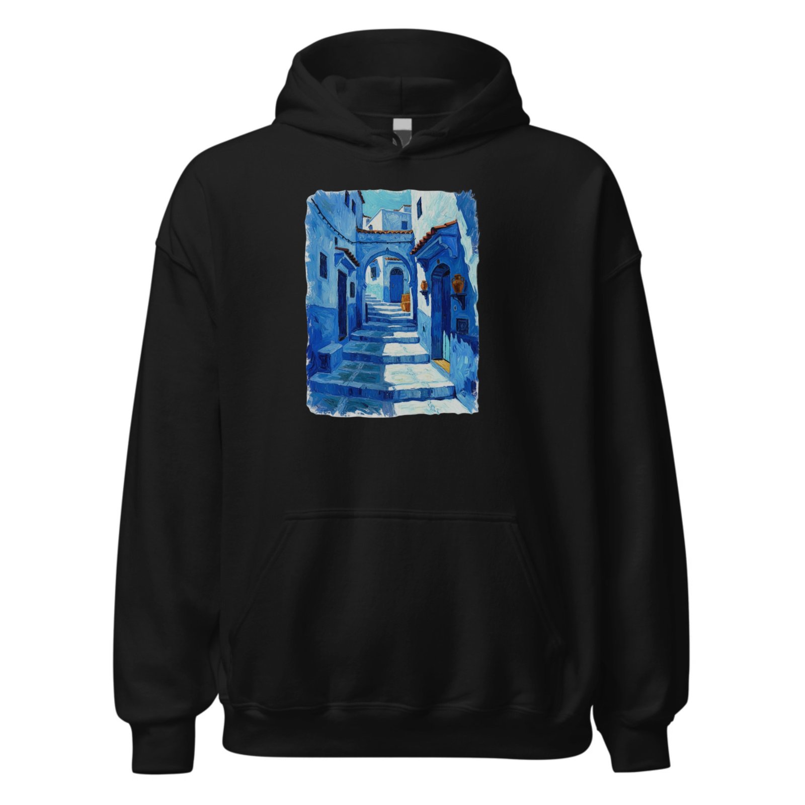 Immerse yourself in Moroccan charm with this hoodie featuring a painterly blue medina alley. Inspired by Chefchaouen’s iconic streets, the artwork delivers calm, culture, and creativity—perfect for travelers, art lovers, and everyday wear with a unique story to share proudly.
