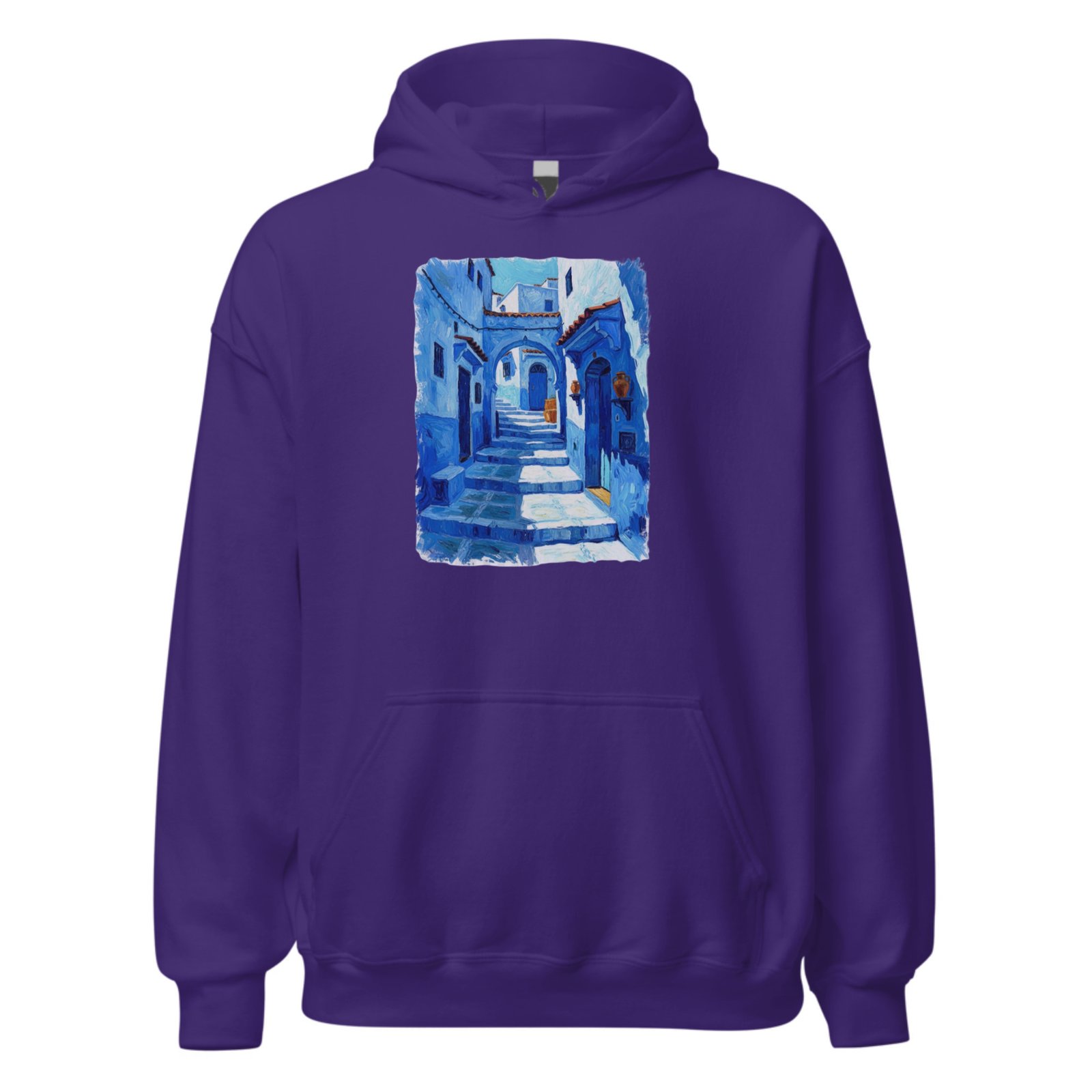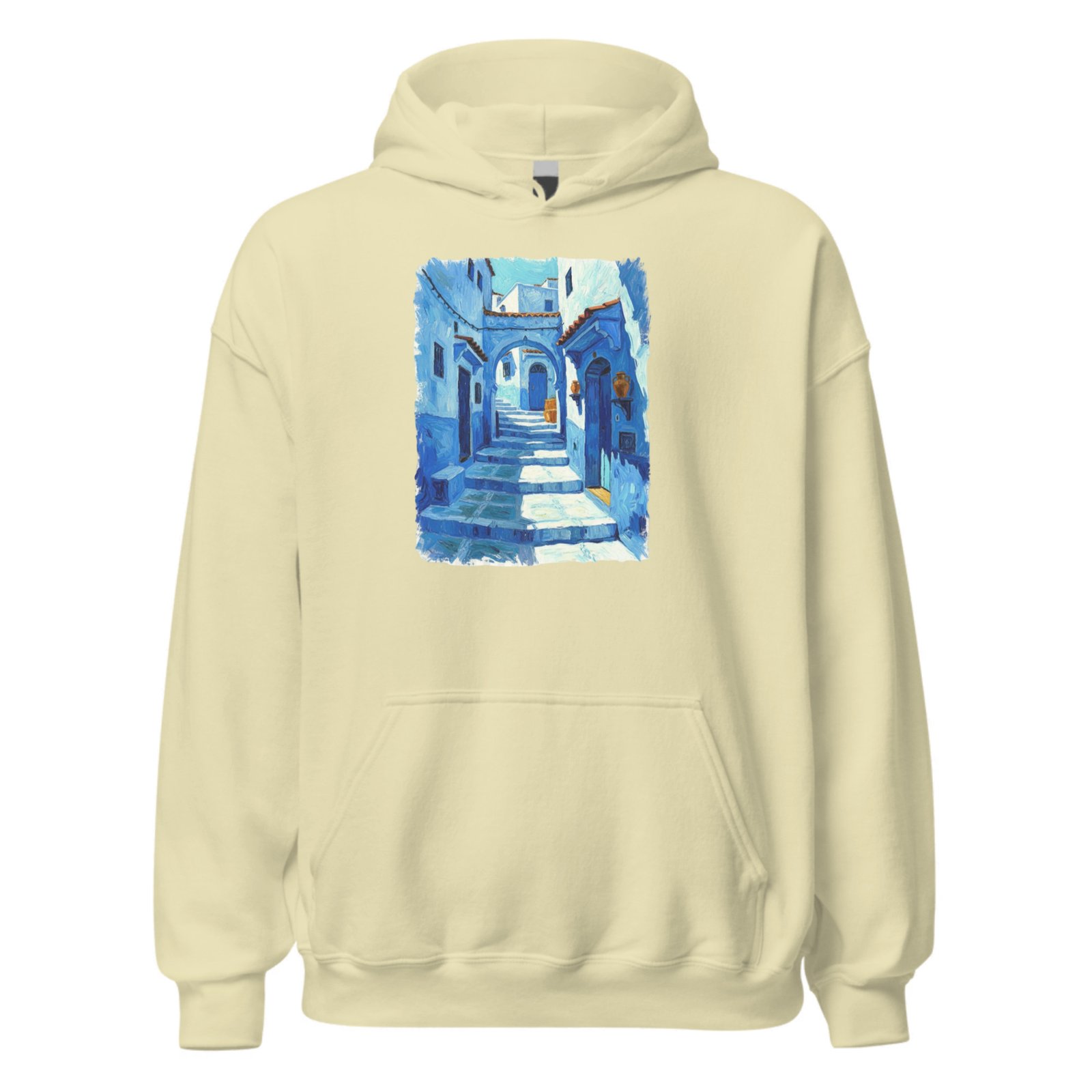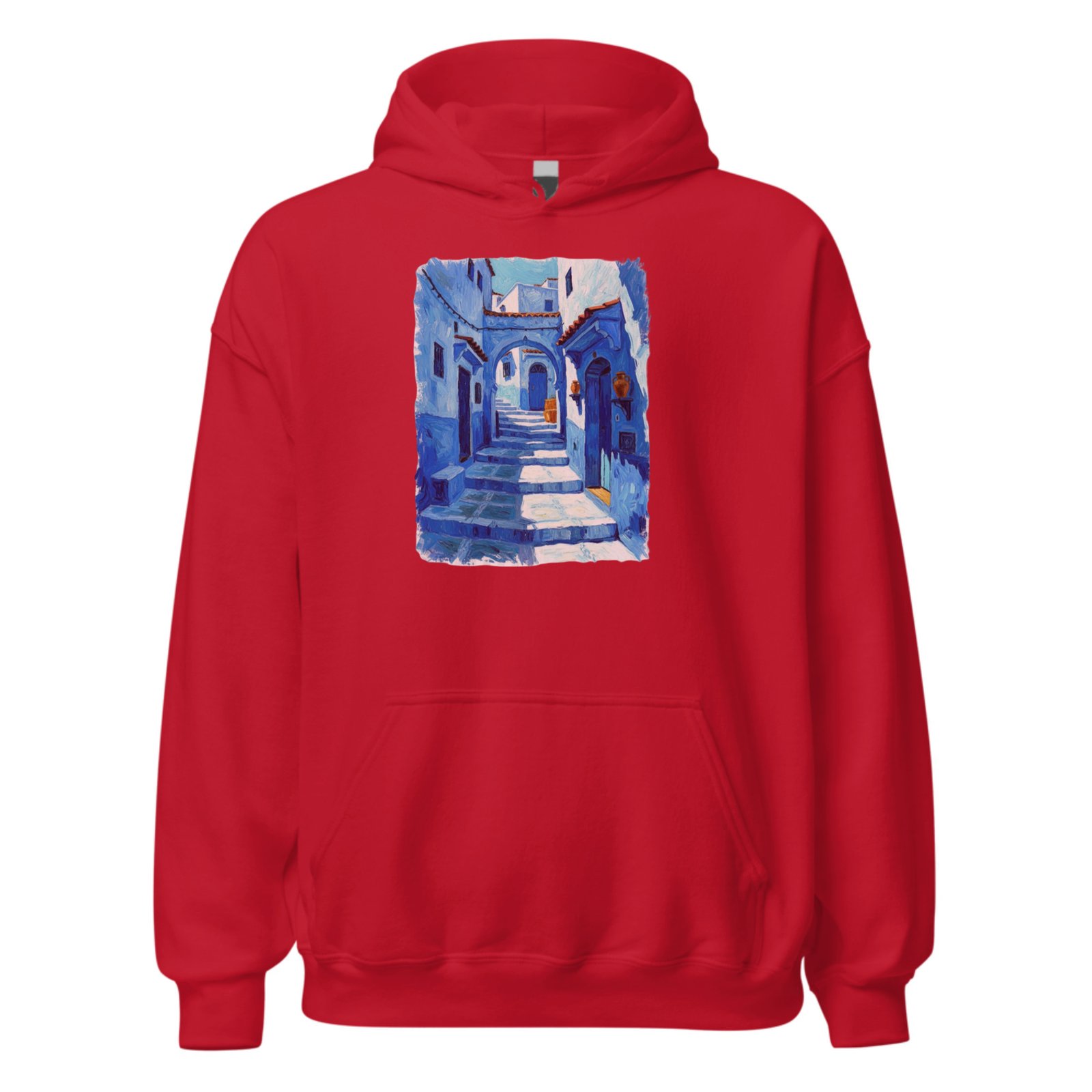 Immerse yourself in Moroccan charm with this hoodie featuring a painterly blue medina alley. Inspired by Chefchaouen’s iconic streets, the artwork delivers calm, culture, and creativity—perfect for travelers, art lovers, and everyday wear with a unique story to share proudly.